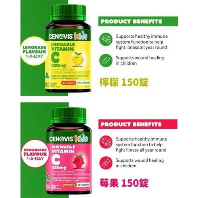 附發票 澳洲 Cenovis 兒童無糖維生素 C 草莓 檸檬風味 咀嚼錠