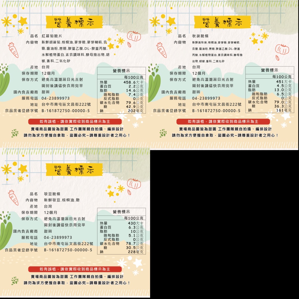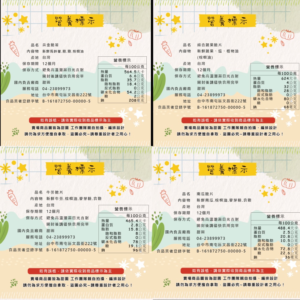 口味部分依舊保存著蔬果原味,酥酥脆脆的口感又能滿足您休閒時想嗑零食的慾望。