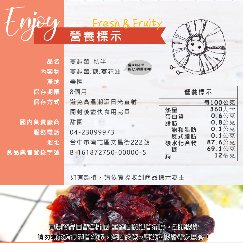 2.保存方式:果乾皆無防腐劑,因此避免高溫潮濕日光直射,