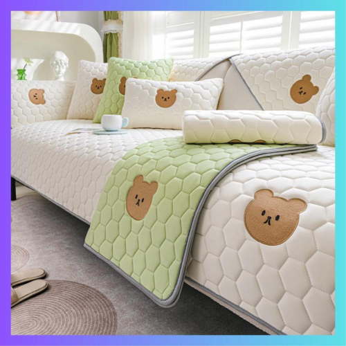 2024夏季新款小熊圖案乳膠涼感沙發墊冰涼墊沙發貓墊狗墊沙發坐墊單人雙人三人沙發毯