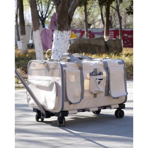 2024年夏季新款外出便攜大容量寵物拉桿箱貓包貓咪狗狗兩廂隔離透氣手提