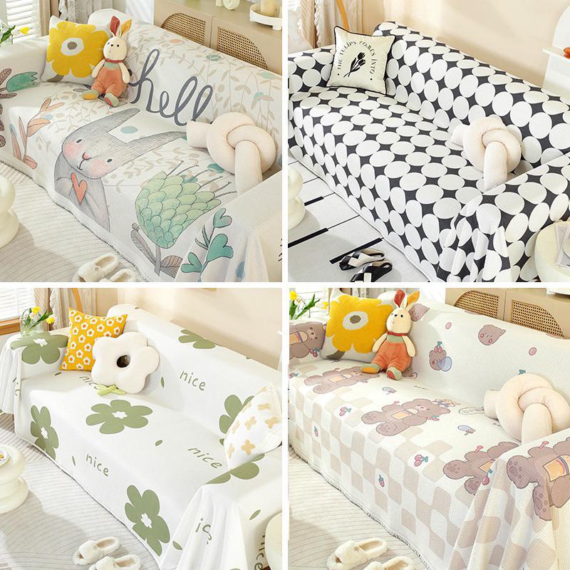 2024年春夏新款自然流蘇邊華夫格防貓抓沙發巾沙發蓋毯沙發毯貓墊狗墊沙發坐墊單人雙人三人座喵家熱銷