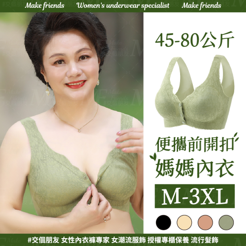 M.F 前扣內衣 媽媽內衣 M-3XL 鈕扣內衣 無鋼圈內衣 無痕內衣 大尺碼內衣 女生內衣 內衣女 A0076