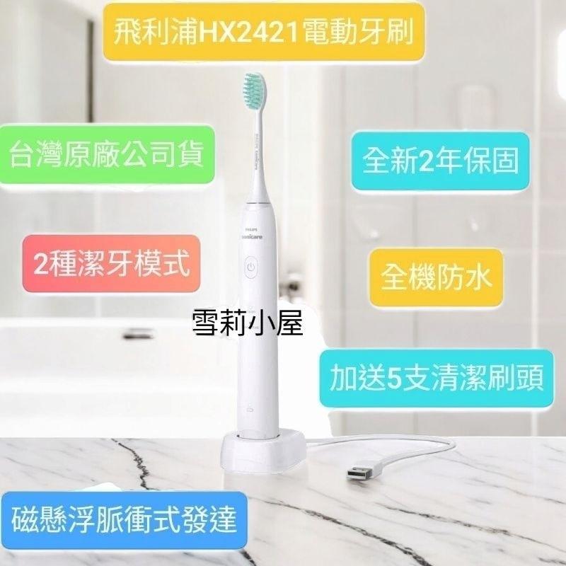 限時特惠再贈五支清潔刷頭喔!全新PHILIPS飛利浦輕巧軟毛音波電動牙刷-白HX2421,紫HX2411