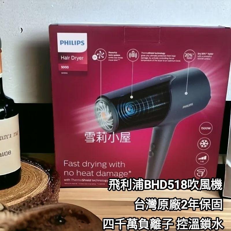 免運全新原廠保固,加贈開運御守,飛利浦沙龍級護髮負離子吹風機(霧藍黑) BHD518控溫鎖水