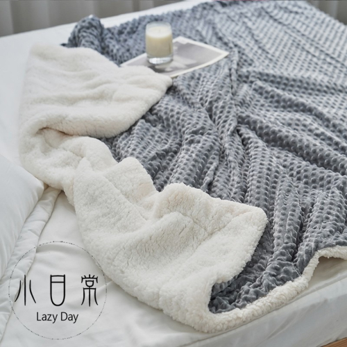【小日常寢居】素面原色(四色任選)3D立體安眠波波絨x羊羔絨加厚雙面保暖毯150x200cm 秋冬熱銷絨毯(限2件超取