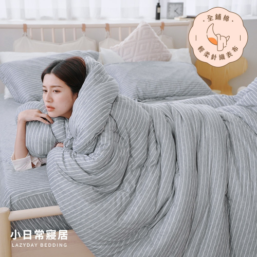 【小日常寢居】輕柔針織全鋪棉床包枕套+棉花糖捲捲被組(單/雙/加大/特大)多款任選 厚床包舖棉冬「BQ14 極淨原韻 」