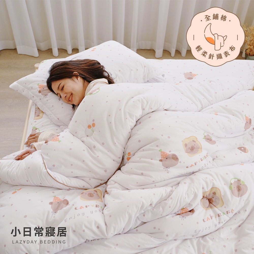 【小日常寢居】輕柔針織全鋪棉床包枕套+棉花糖捲捲被組(單/雙/加大/特大)多款任選 厚床包舖棉冬「BQ15-嘟嘟趴踢 」