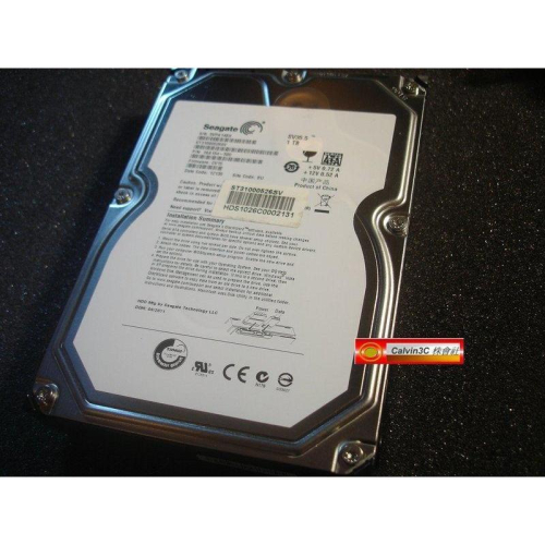 Seagate SV35.5 ST31000526SV 1TB 7200 RPM 32MB Cache SATA 6.0Gb/s Internal Hard Drive 商品規格: Maximise  Storage Capacity  1TB Form Factor 3.5 inch  Interface Serial ATA (SATA)  SATA 6Gb/s Type Spindle  7200 RPM Buffer Size (Cache)  32MB Dimensions Dimensions (W x D x H)  101.85 x 146.99 x 26.1 mm Weight  677 grams ------------------------------------------------------------------------------------------------------------------------------------------------------------------------------------------------------------------ Seagate SV35.5 系列 錄影監控型專用硬碟,為Seagate專為數位錄影裝置製造商所設計的,桌上型儲存裝置,高速介面 SATA3,6.0GBps 秒的高傳輸,32M快取,1000G超大容量,為庫存的良品。 3.5吋桌上型硬碟,為庫存備用良品,外觀完整,功能一切正常,一律經由原廠專業檢測把關,品質第一,直購價,需要的人請下標,看到就結標賣出。  庫存備用良品,靜電袋包裝出貨。 現貨中,賣完就沒了~~!!  賣場保固七天。 新竹科學園區、NOVA、新竹師院、新竹火車站可面交。 以上資料來源:Seagate原廠