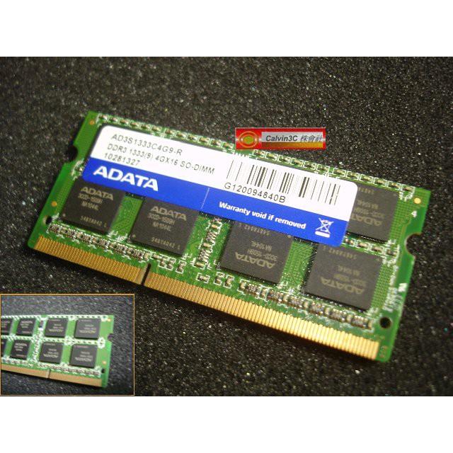 威剛 ADATA DDR3 1333 4G DDRIII PC3-10600 雙面16顆粒 筆記型專用 終身保固