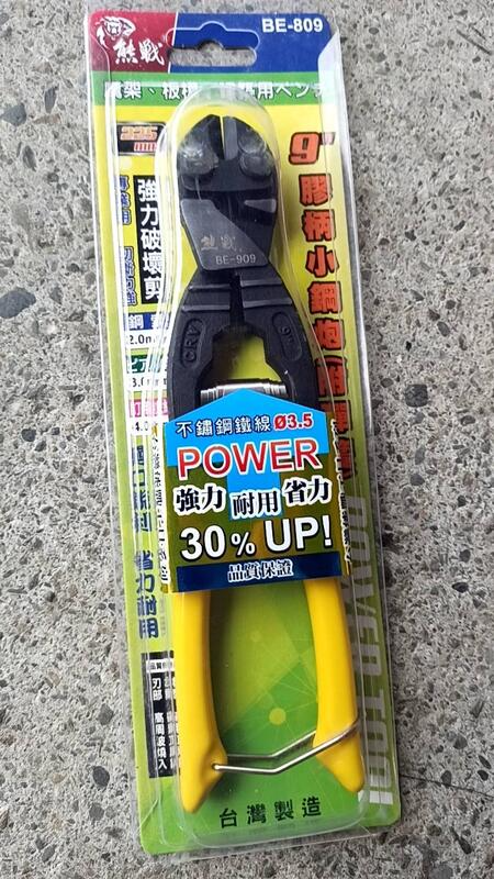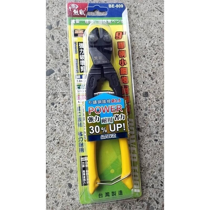 強力破壞剪 小鋼剪BE-809 9吋 225mm彈黃省力型30% 附套防滑 剪不繡鋼3.5MM 熊戰 建築用 power