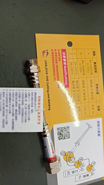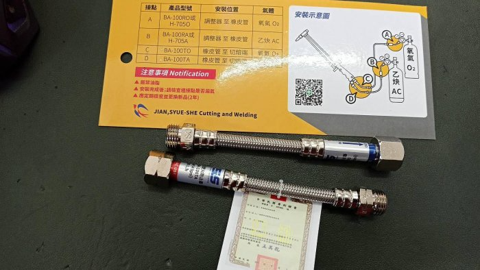 專利品彈性逆火防止器防爆防逆火360度旋轉鎖牙式切用調整器切熔 BA100TS乾式彈性軟管氧氣乙炔