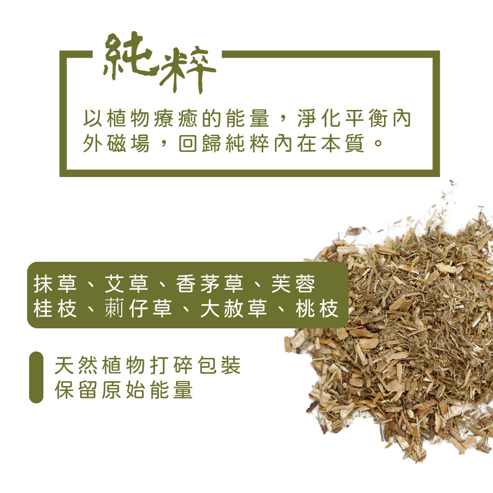 抹草、艾草、香茅草、芙蓉、桂枝、莿仔草、大赦草、桃枝數種天然草本植物。