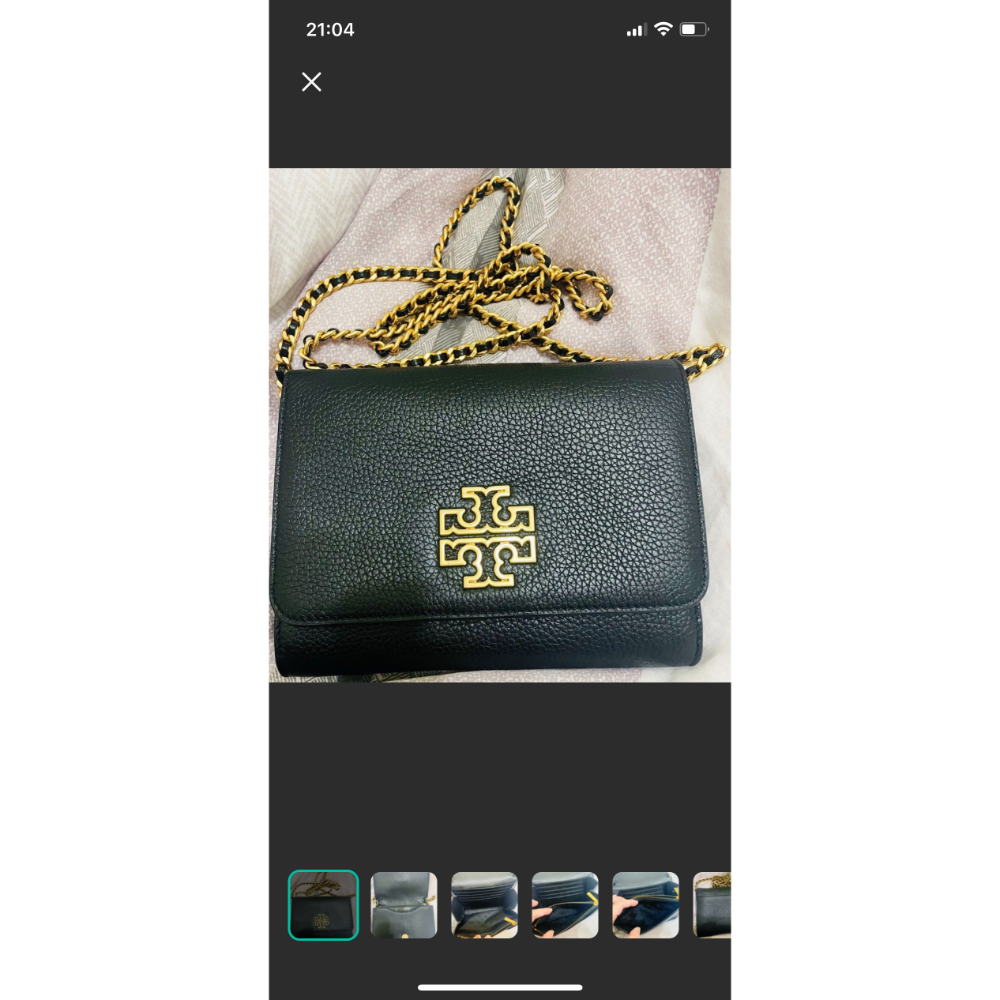 降價出售TORY BURCH Britten 金字簍空大T LOGO牛皮釦式鏈帶肩背包