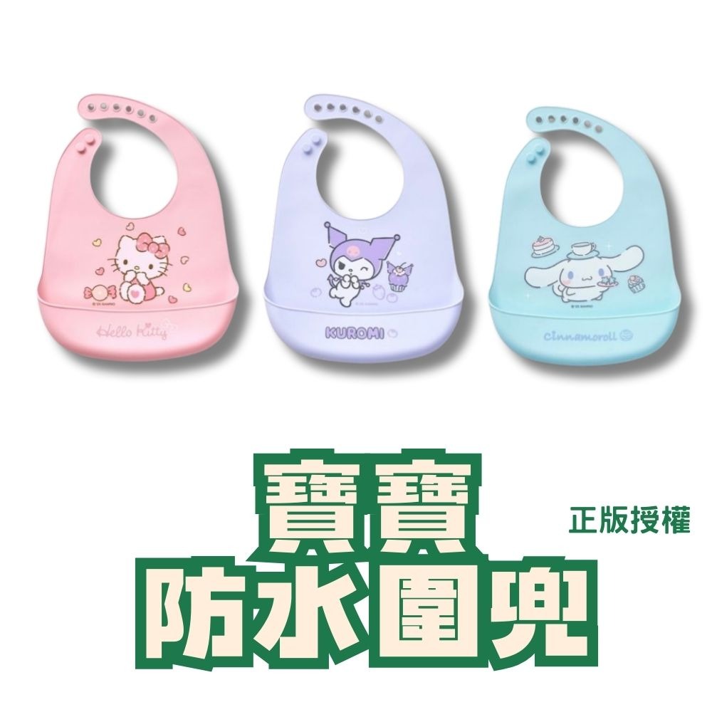 【寶寶防水圍兜】食品級矽膠100% 防水圍兜 嬰兒吃飯圍兜 矽膠圍兜 寶寶圍兜 圍兜 三麗鷗正版授權