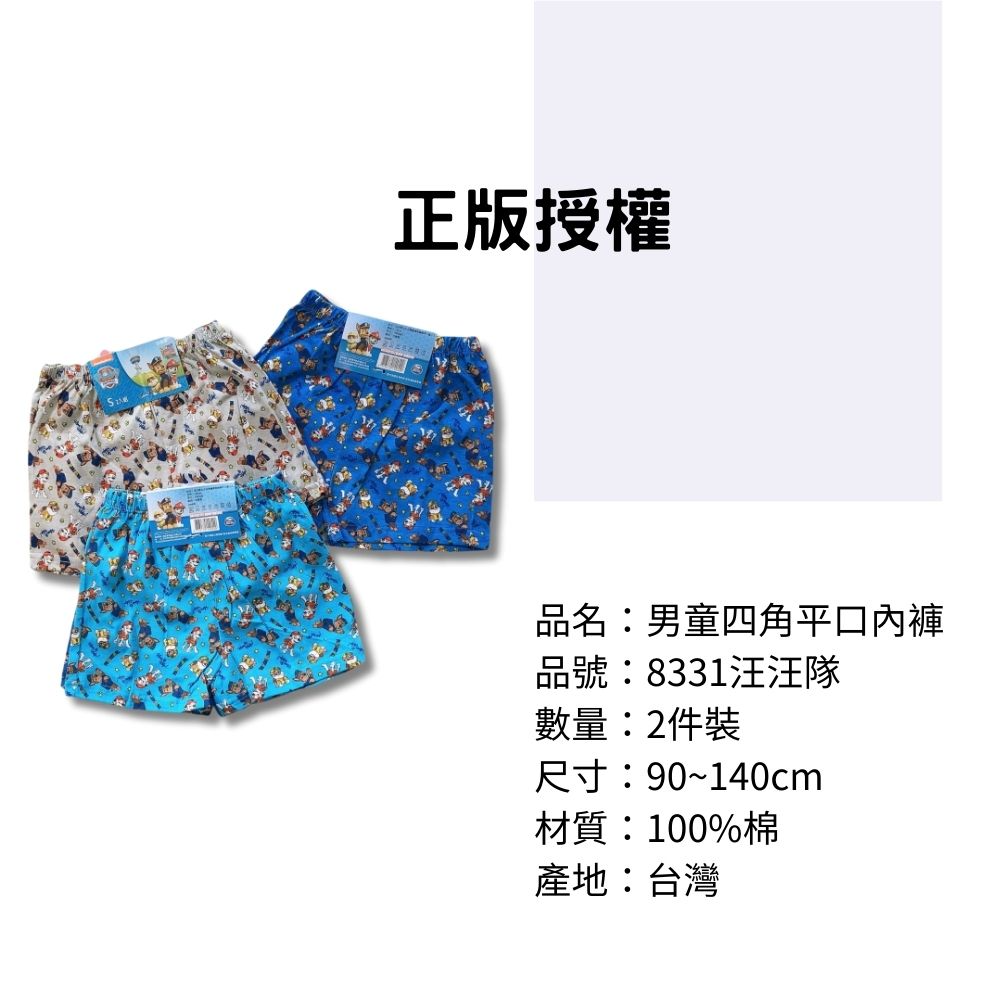 8331汪汪隊男童四角平口褲2入組 台灣製造 100%純棉 兒童內褲 男童四角內褲