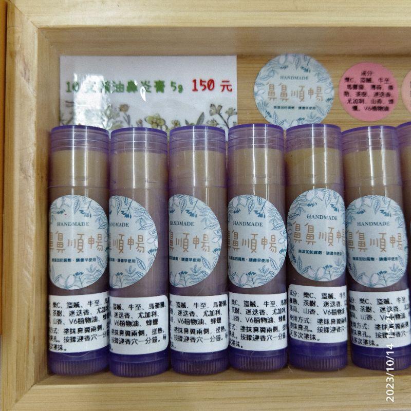 10支精油鼻炎膏 成分:樂C、盜賊、牛至、馬鬱蘭、薄荷、羅勒、茶樹、迷迭香、尤加利、山香、植物油、蜂蠟 使用方式:塗抹鼻翼兩側,搓熱。塗抹鼻孔。按揉迎香穴一分鐘。每天多次塗抹。 鼻竇炎、感冒、鼻敏感、呼吸道、鼻炎