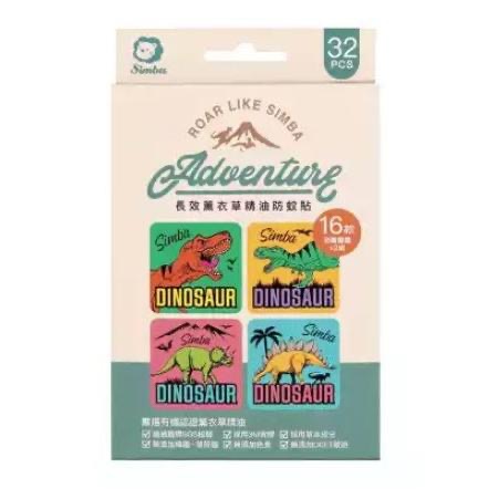 【Simba 小獅王辛巴】長效薰衣草精油防蚊貼-恐龍圖鑑-32枚 驅蚊貼 恐龍防蚊貼 暴龍 迅猛龍 雷龍 翼手龍