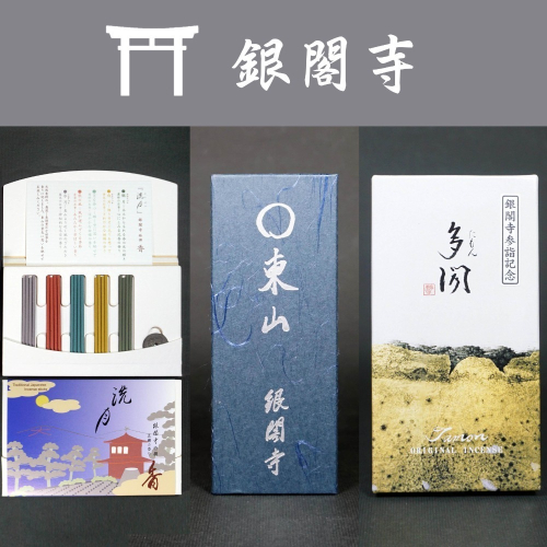 【洗月】:由「松榮堂」製作,內含五種以銀閣寺景觀為名的香,五種口味各4支,共20支入,長度約7公分,以沉香、白檀、柑橘等天然植物調製,表現出風情萬種的東山之美。