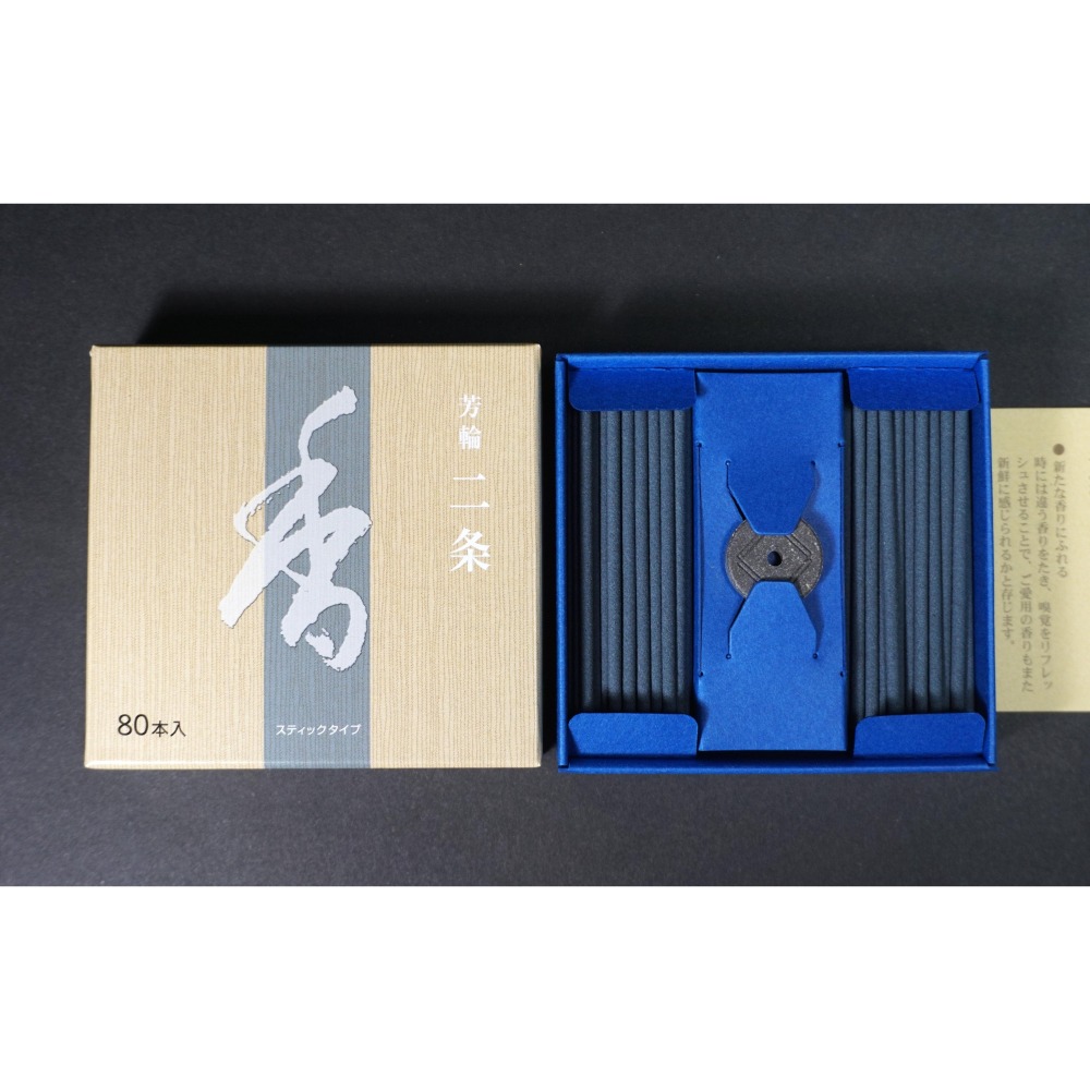 日本 京都 松榮堂 芳輪 【二条】 二條 超值大盒裝 80本入 白檀 線香 薰香 臥香 香氛 (附香立) 〈現貨〉