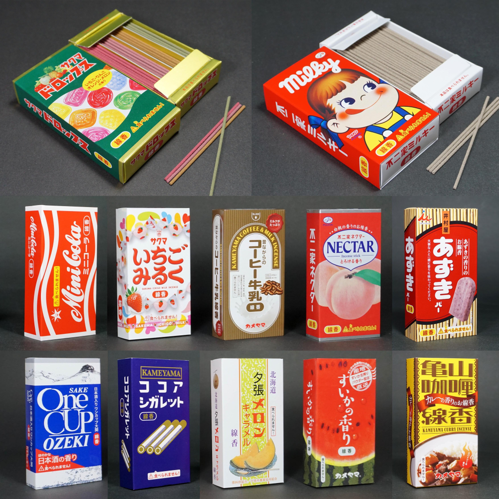 日本把兒時回憶的經典糖果都做成線香了!每一款的包裝皆完美復刻,親切感十足,點燃後散發淡淡的香甜氣味,讓人馬上拋開緊繃的情緒,回到兒時的快樂時光!