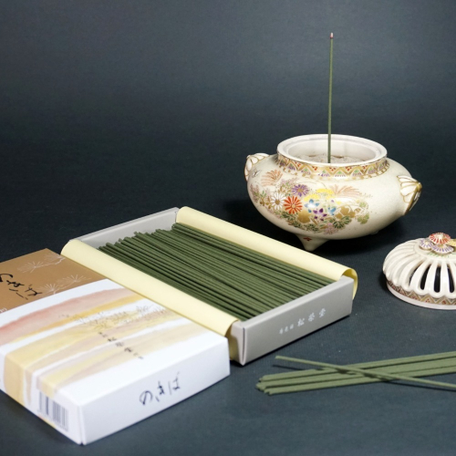 【のきば】京線香為日本松榮堂銷售第一名的超人氣經典線香,以白檀為基材搭配其他天然香材所製作,如同日式屋簷下綻放的梅花香,散發出令人放鬆的溫和香味。
