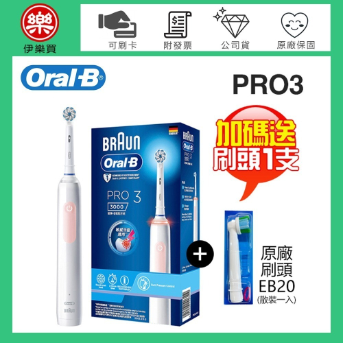 Oral-B 歐樂B PRO3 3D電動牙刷 -馬卡龍粉 -原廠公司貨【加碼送原廠刷頭1支(EB20)】