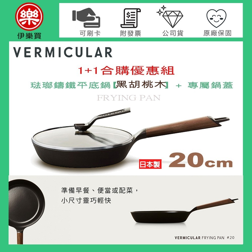 【1+1合購優惠組】 日本 Vermicular 20CM琺瑯鑄鐵平底鍋 (黑胡桃木) + 專屬鍋蓋