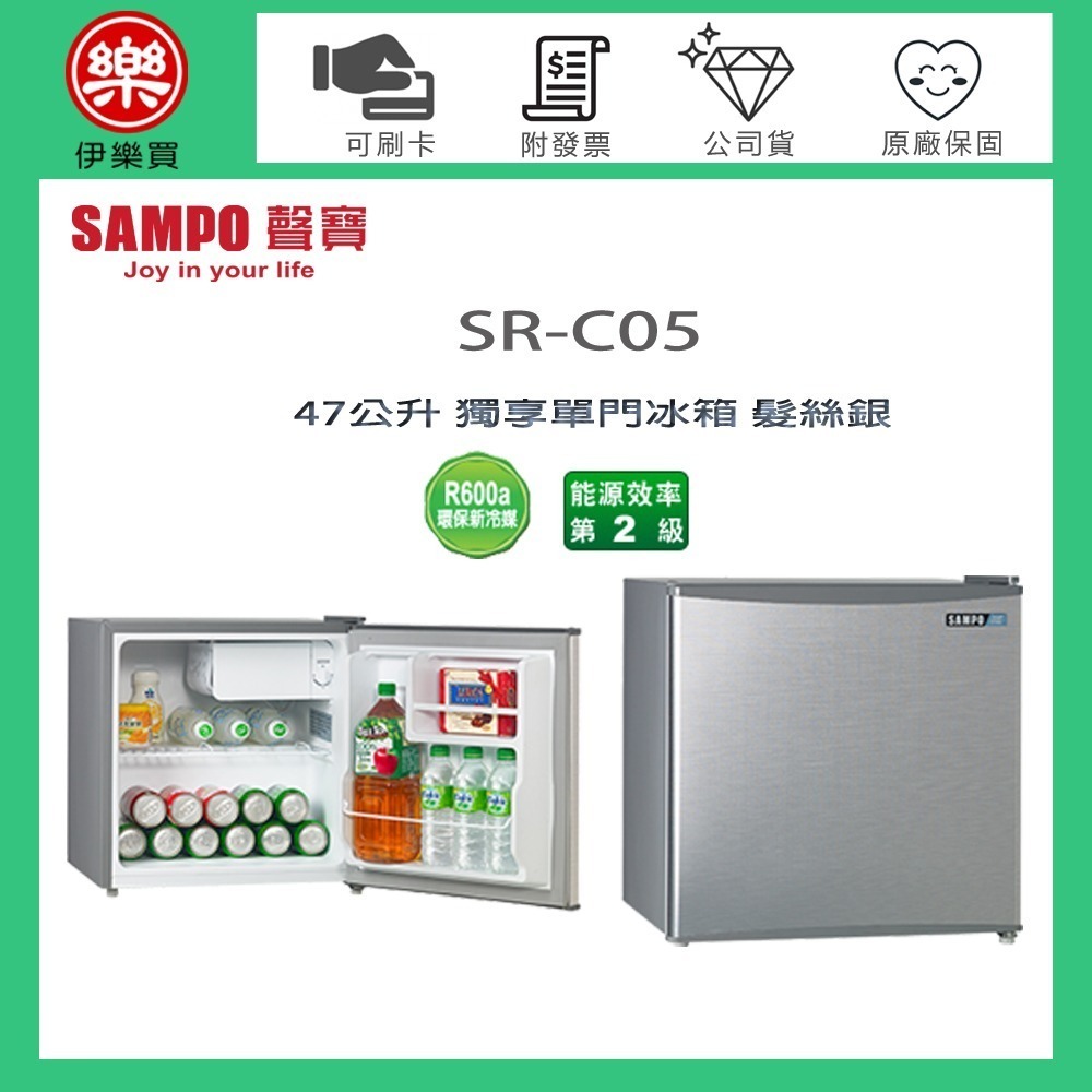 SAMPO 聲寶 47公升 獨享單門冰箱 -髮絲銀 SR-C05