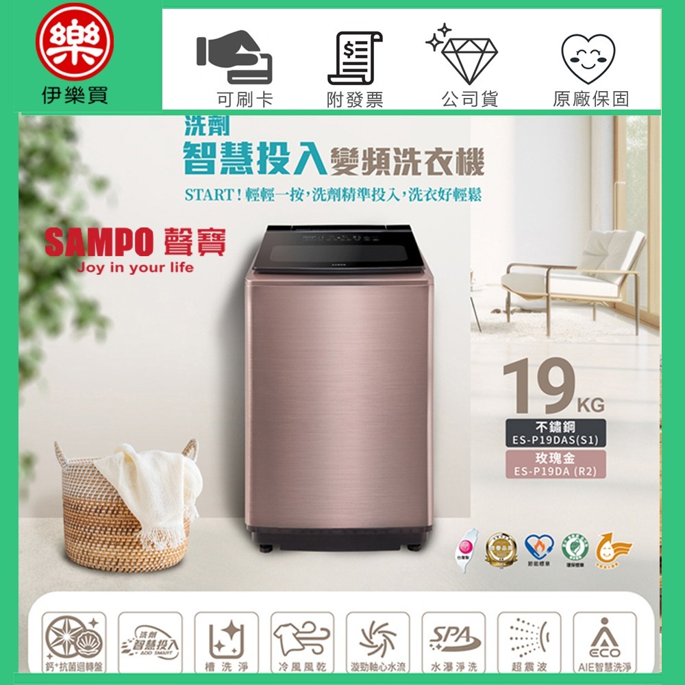 SAMPO 聲寶 19KG 星愛情 洗劑智慧投入 變頻單槽洗衣機 -玫瑰金