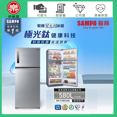 SAMPO 聲寶 580公升 星美滿極光鈦變頻雙門冰箱 -彩紋銀