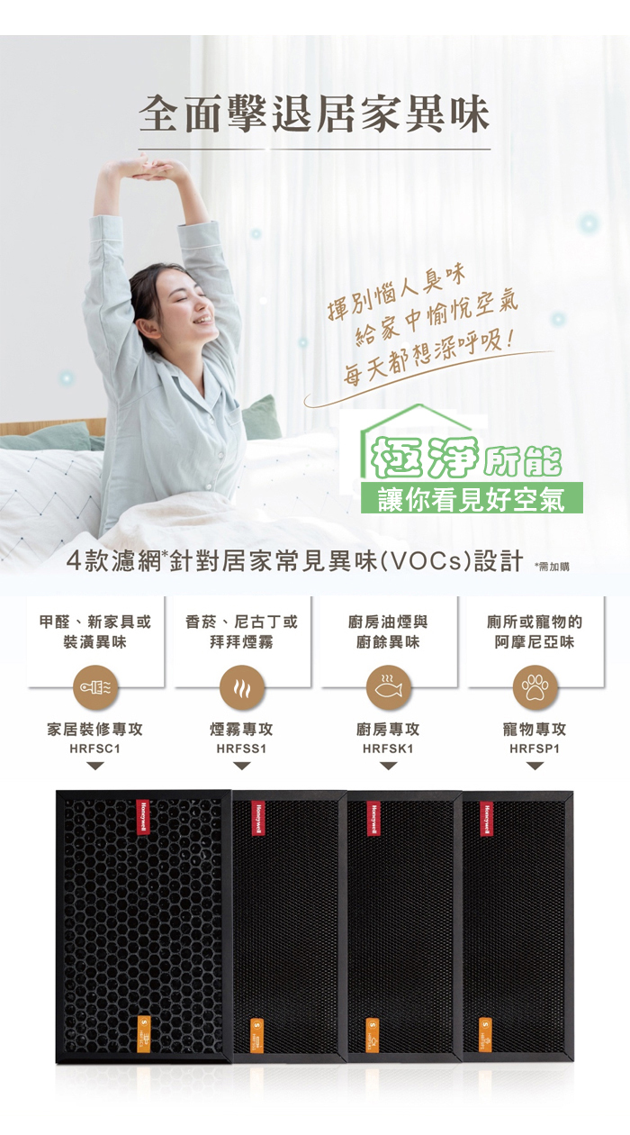 ◆強效淨味濾網(加購):淨味再升級,4款客製濾網,隨環境情境任意搭配