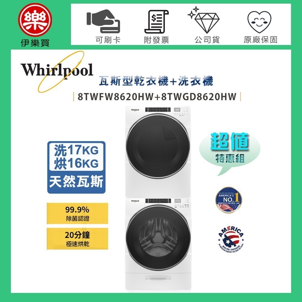 Whirlpool 惠而浦 16KG 美製 37行程快烘滾筒式乾衣機-瓦斯型 8TWGD8620HW