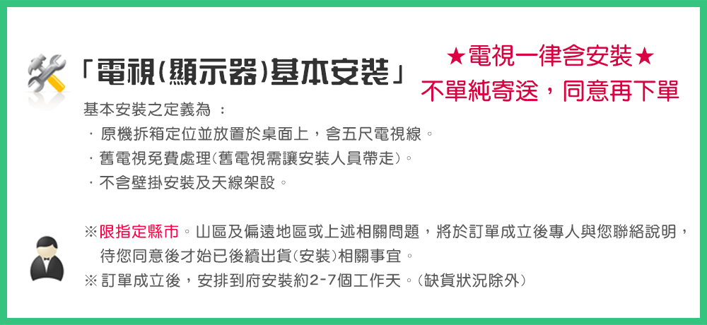 ※安裝處若無電梯需收取樓層搬運費,站內請搜尋「樓層費」加購。