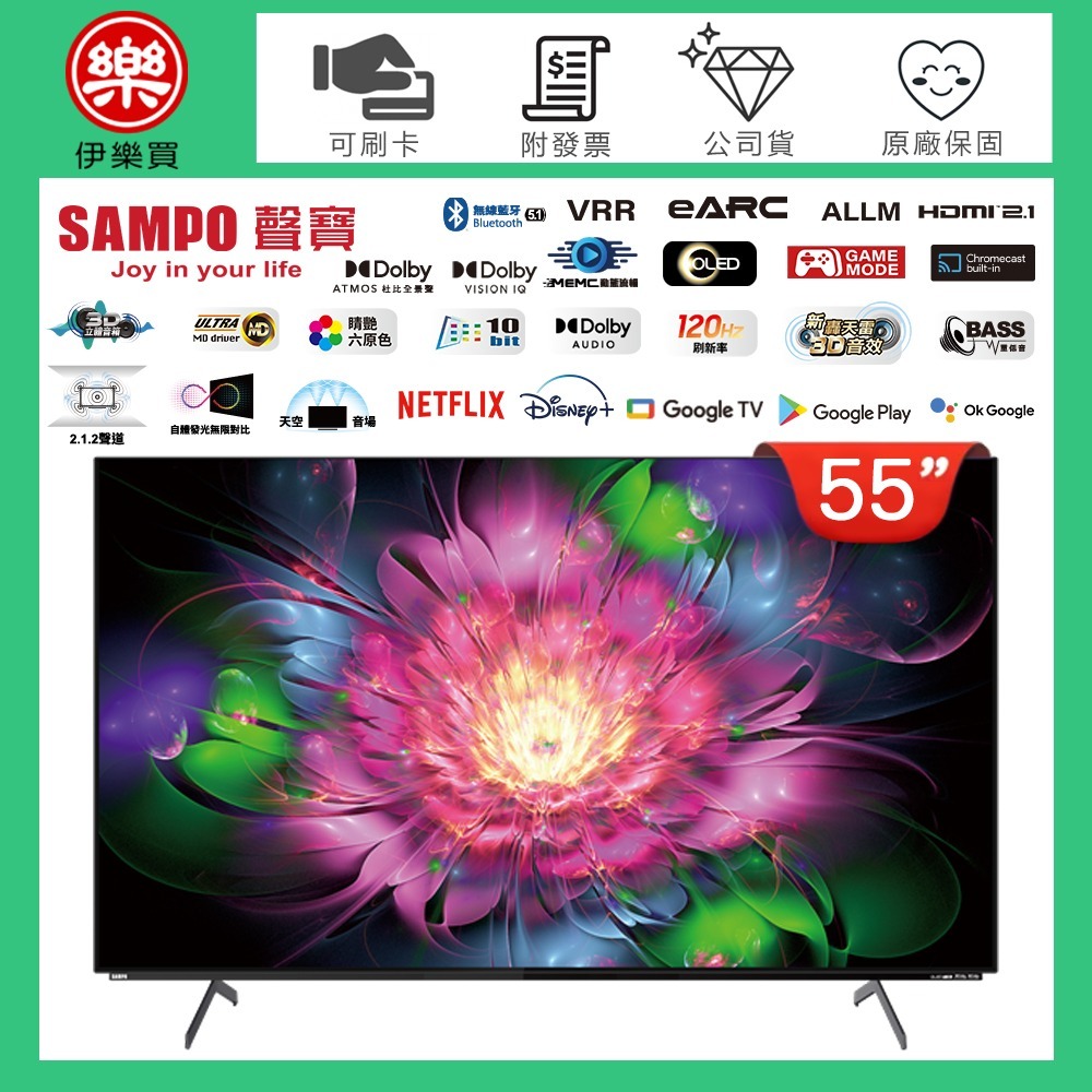 SAMPO 聲寶 55型【4K UHD OLED】轟天雷聯網液晶顯示器 OLED-55ZW8212