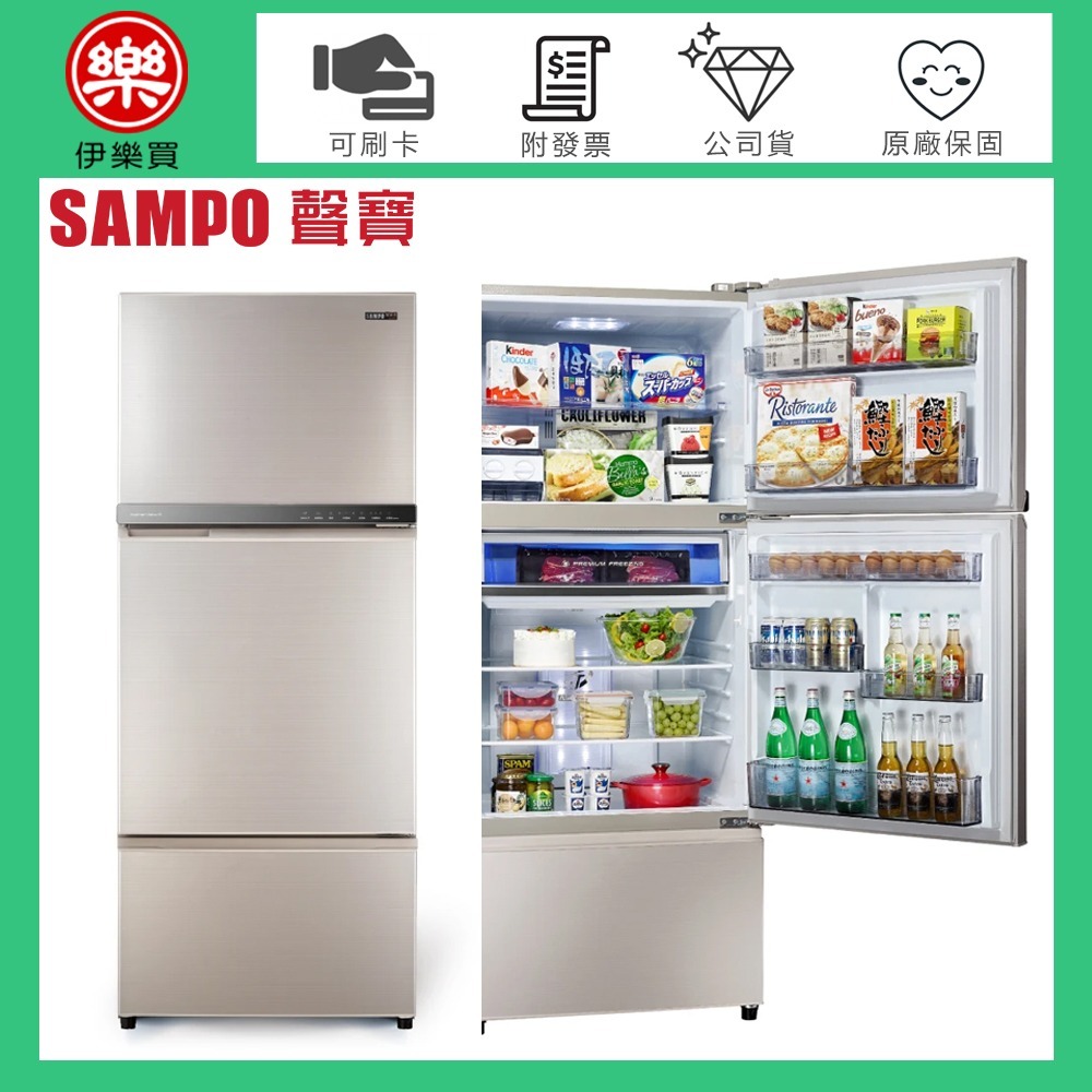 SAMPO 聲寶 605公升 星美滿極光鈦變頻三門冰箱 -炫彩金