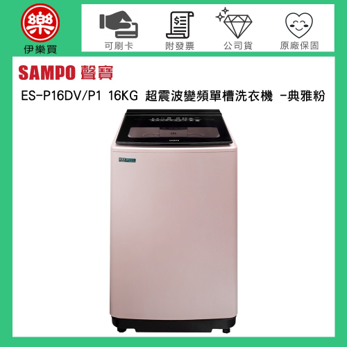 SAMPO 聲寶 16KG 超震波變頻單槽洗衣機 -典雅粉