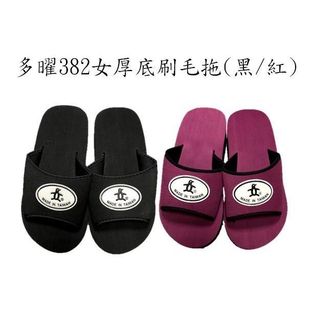 1.品名:多曜382女厚底刷毛拖(黑/紅)