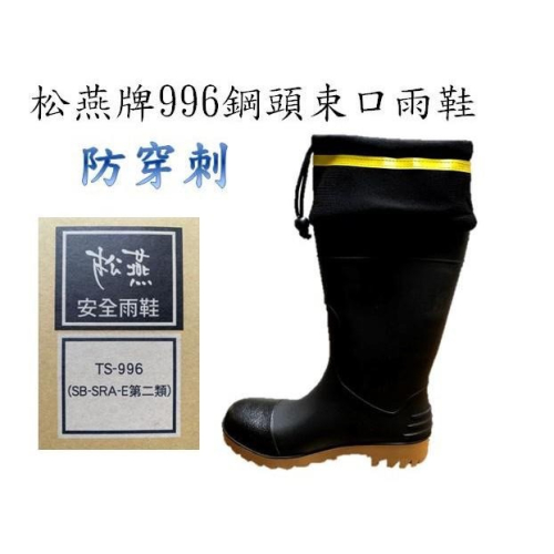 1.品名:松燕牌996鋼頭束口雨鞋.防穿刺(黑)