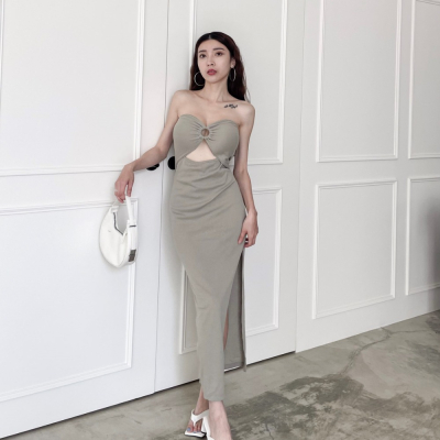【DOE.FF】 圈環開岔抹胸長洋 (現貨) 洋裝 連身裙 顯瘦洋裝 長洋裝 短洋裝 渡假洋裝 性感洋裝 氣質洋裝 平口