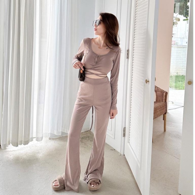 【DOE.FF】歐美BRA綁腰+喇叭褲套裝|現貨|套裝女 喇叭褲 辣妹 顯瘦長褲 bratop 秋冬女 短版上衣 歐美