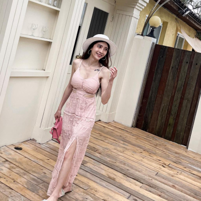 【DOE.FF】 蕾絲開衩帶杯長洋 (現+預) 渡假長洋 粉色洋裝 連身裙 洋裝女 顯瘦洋裝 連體裙 禮服