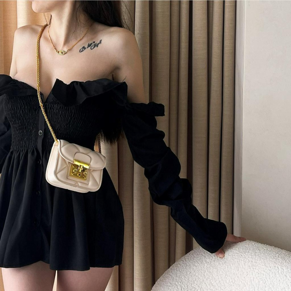 【DOE.FF】 菱格金鍊迷你小包 (現貨) 包包女 小廢包 小香包 方包 腋下包 肩背包 手拿包 托特包 鍊條包