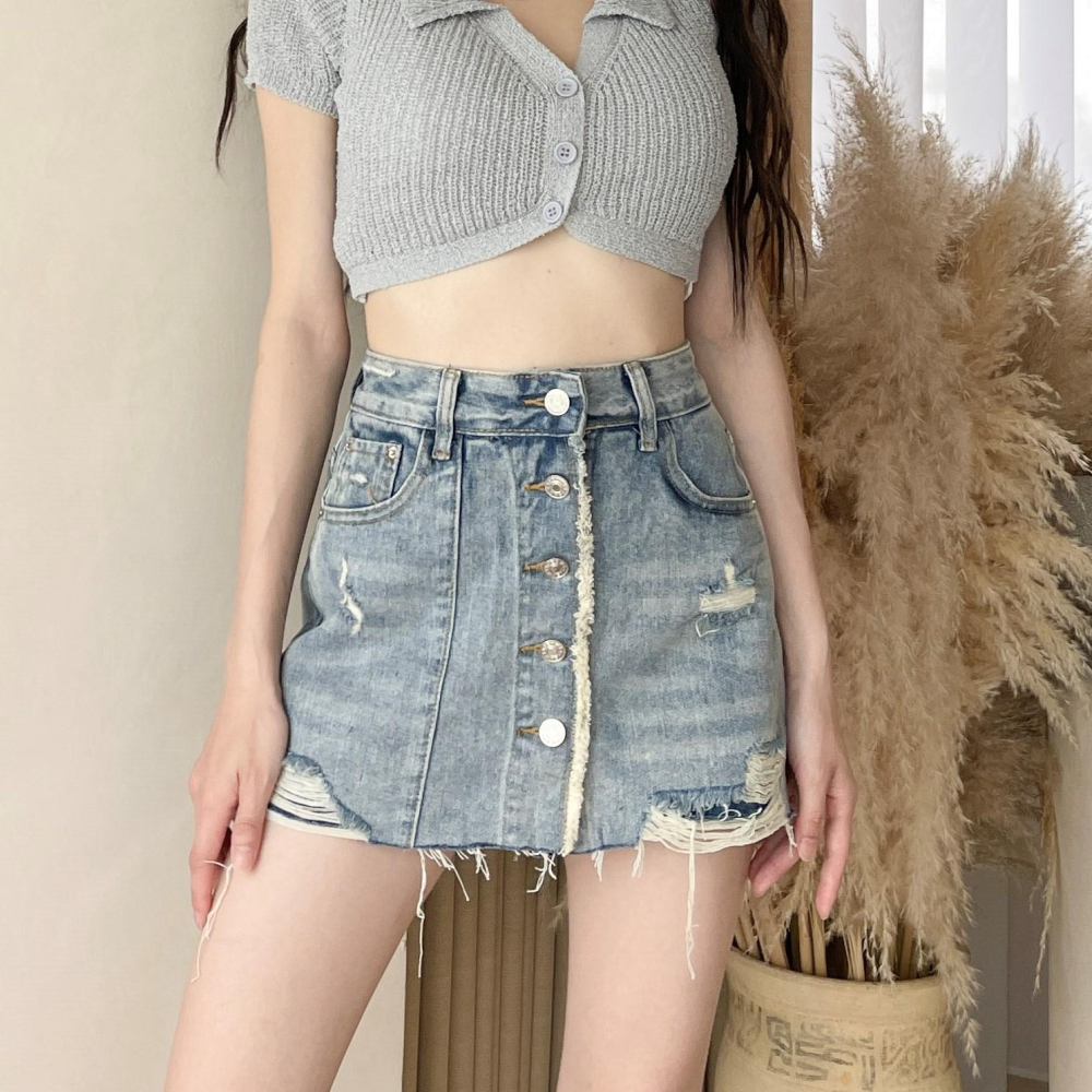 【DOE.FF】 復古排釦牛仔褲裙 (現貨) 短裙 牛仔短裙 a字裙 褲裙 牛仔裙 裙子女 迷你裙 包臀短裙 女裝
