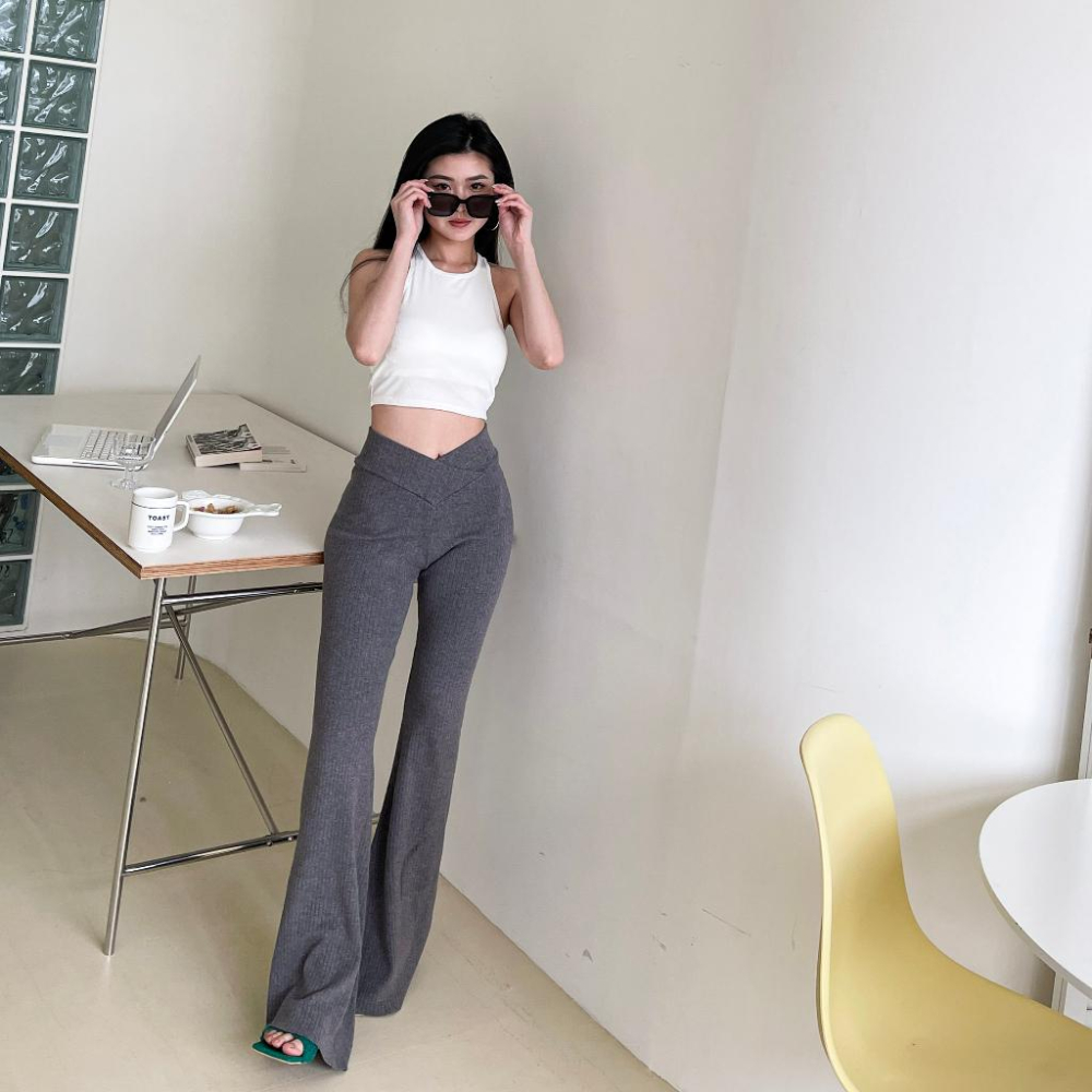 【DOE.FF】 垂感V腰針織喇叭褲 (現貨) 微喇叭褲 高腰長褲 緊身褲 顯瘦長褲 喇叭褲 長褲女 女裝 針織