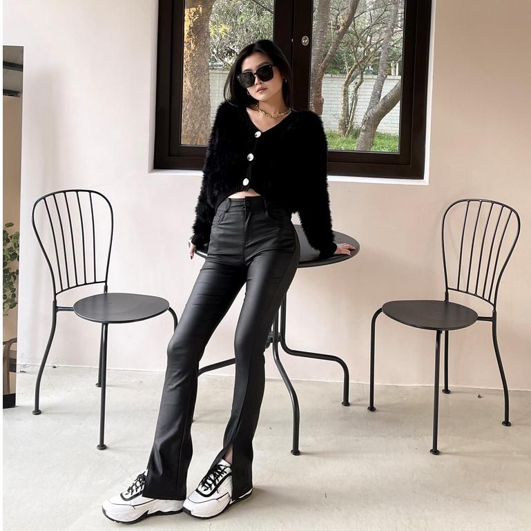 【DOE.FF】霧面開岔皮質喇叭褲 | 現貨 | 快速出貨 彈力長褲 皮長褲 皮褲 喇叭褲 INS風 歐美風 辣妹 韓