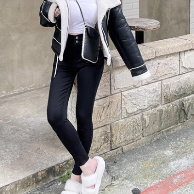 【DOE.FF】純黑兩釦激瘦彈力魔術褲|現貨|小腳褲 彈力褲 窄管褲 韓國 韓版 韓系 高腰長褲 顯瘦長褲 長褲女