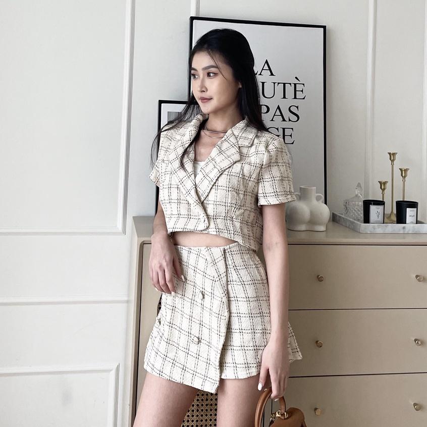 【DOE.FF】微秋純欲奶杏小香套裝|現貨|小香風 套裝女 西裝外套 西裝套裝 包臀短裙 A字短裙 小香風套裝 秋冬套裝
