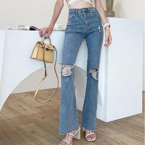 【DOE.FF】刷破翹臀牛仔喇叭褲 (現貨) 牛仔長褲 高腰長褲 牛仔褲 牛仔高腰 喇叭褲女 顯瘦長褲