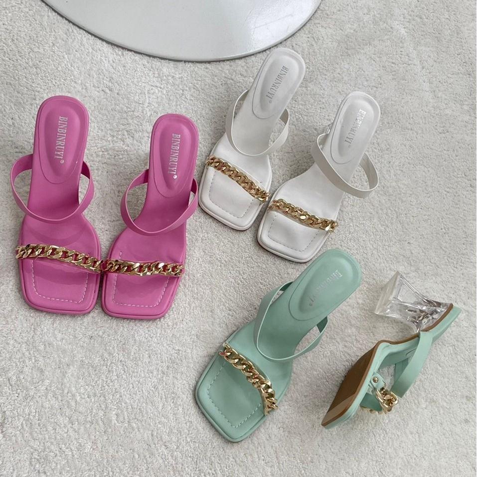 【DOE.FF】 韓國金鍊透明低跟涼拖鞋|現貨|高跟鞋 低跟鞋 涼鞋
